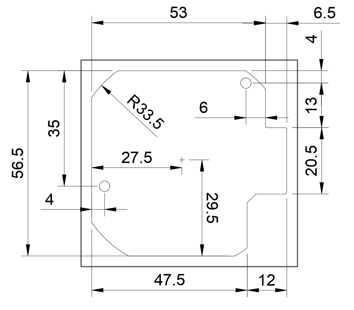 Descriptif des broches. Les pads carrés sont le GND (-).