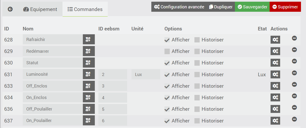 Je n’aurai jamais créé toutes les commandes pour l’intégrer à Jeedom. Et pour être honnête, j’en ai même masqué pour la capture d’écran! 🤣